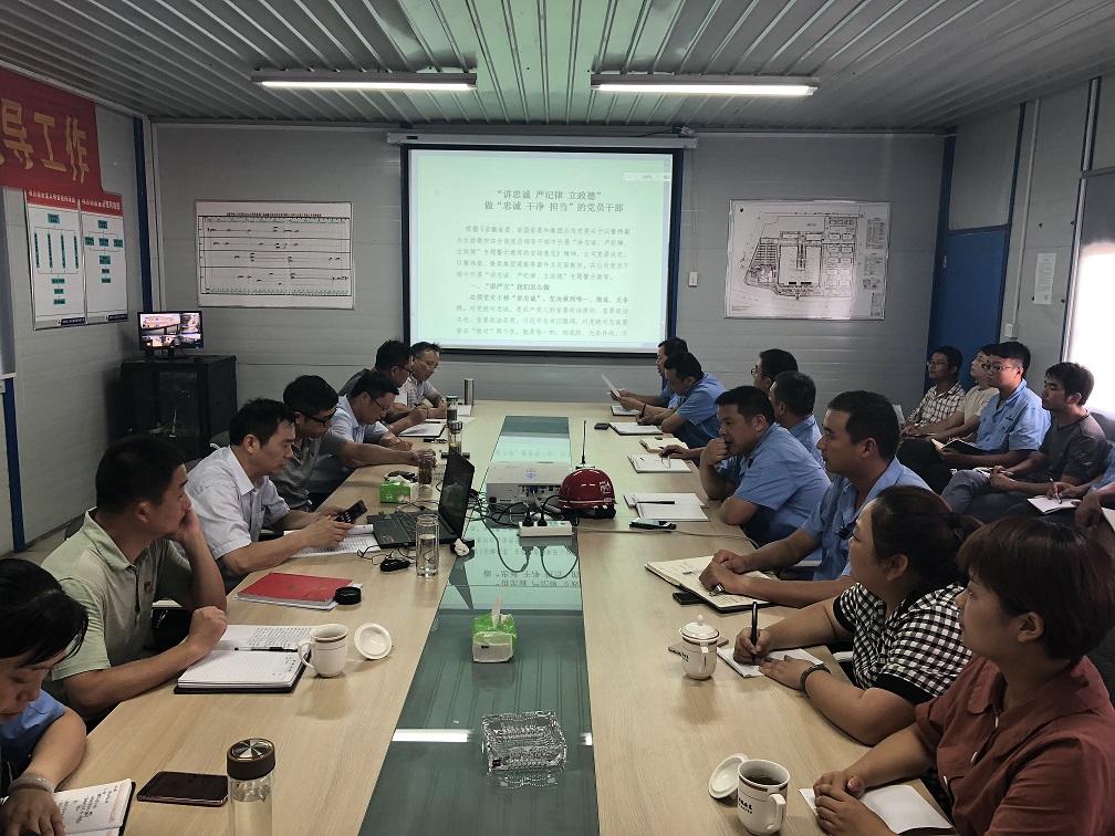 7月31日下午,公司黨委委員、副總經(jīng)理劉安俊,黨委委員、紀委書(shū)記、工會(huì )主席李寬旭赴安徽中煙蚌埠卷煙廠(chǎng)項目部開(kāi)展題為:“‘講忠誠、嚴紀律、立政德’做‘忠誠 干凈 擔當’的黨員干部”的大宣講活動(dòng),分公司領(lǐng)導班子成員、各部門(mén)人員及項目全體員工參加此次活動(dòng)。