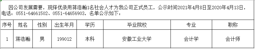 2021年擬錄用社會(huì )人才公示