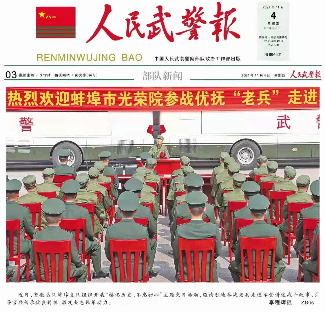 近日,《中國軍視網(wǎng)》《人民武警報》專(zhuān)題報道安徽安裝蚌埠分公司年飛同志作為參戰退伍老兵講授專(zhuān)題黨課。