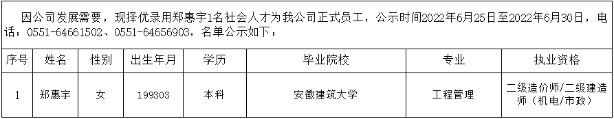 2022年擬錄用社會(huì )人才公示