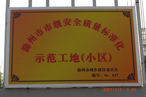 2010年12月31日,滁州分公司承建的皖投水岸星城一期三標段工程成功創(chuàng )建滁州市安全質(zhì)量標準化示范工地。