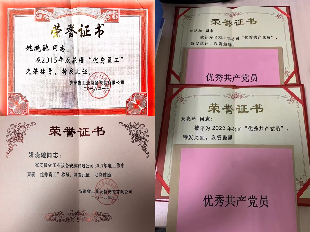 2012年,姚曉馳懷揣夢(mèng)想與激情走出校門(mén)后,加入安徽建工建設安裝集團有限公司。他在公司培養和自身努力下迅速成長(cháng),參與多個(gè)重大工程項目。2014年在吉林省弘泰煤焦油輕質(zhì)化項目中,初出茅廬的他不放過(guò)任何學(xué)習機會(huì ),為日后發(fā)展打基礎。2016年在內蒙古家景鎂業(yè)焦化產(chǎn)品項目,他精心規劃、把控質(zhì)量、協(xié)調資源、優(yōu)質(zhì)履約,使得項目高質(zhì)量完成,獲得業(yè)主授予的一面錦旗。這面錦旗既是對團隊的認可,更是對他能力和精神的贊揚。2022年在新疆托里水源地和市政改造項目中,他挑起大梁,克服復雜環(huán)境和條件,攻克一道又一道難關(guān),順利完成了施工任務(wù)。2023年在新疆托里老舊小區EPC項目,作為負責人,他把項目管理得井井有條,又一次為公司贏(yíng)得良好口碑。